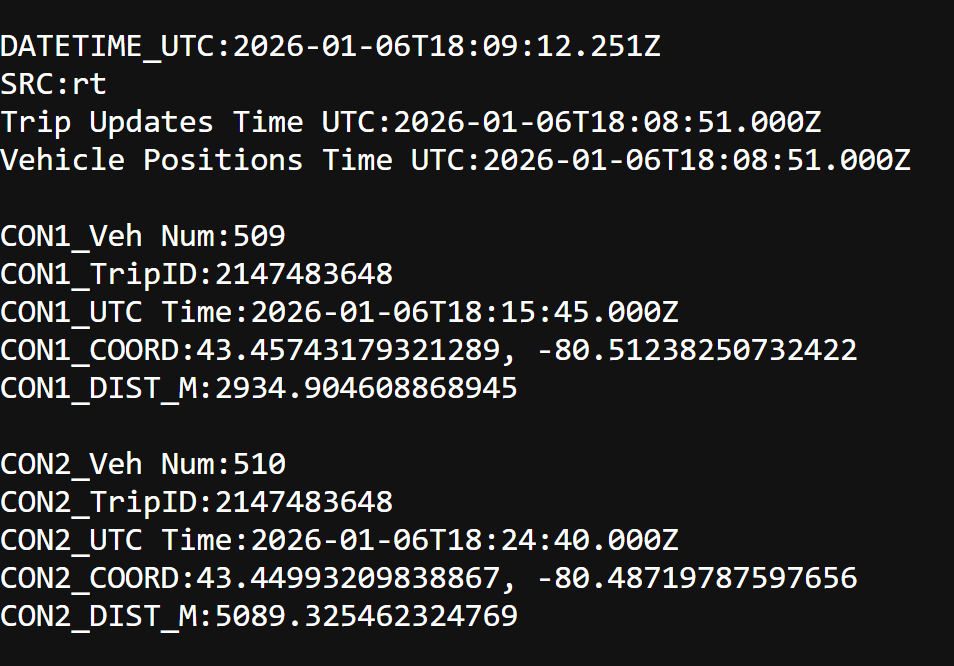 Worked directly with GTFS and GTFS-realtime data formats to extract relevant arrival and schedule information from raw feed data. Identified required entities and fields within the feed and filtered the dataset to return only the information needed for downstream display, reducing payload size and complexity. Designed the Worker’s response structure to be deterministic and microcontroller-friendly, enabling straightforward parsing on an ESP32 without relying on heavyweight libraries.